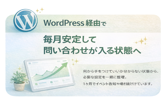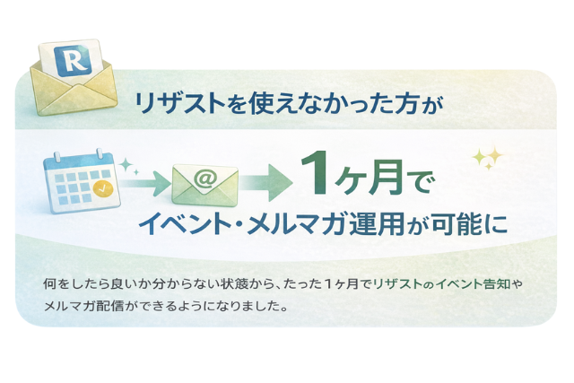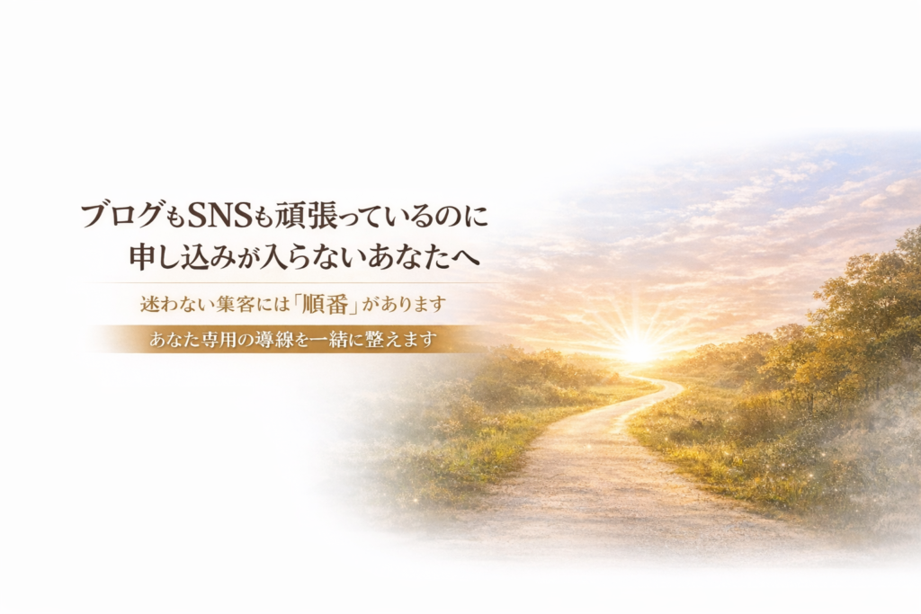 HOME 2026.02.04 このようなお悩みありませんか? ブログやSNSを頑張っているのに申し込みが入らない 集客のやり方が多すぎて、何が正解かわからない WordPressやリザストを使いたいけど、難しくて止まっている 一人でやっていると不安で、手が止まってしまう 本当は「ちゃんとした仕組み」を作りたい その悩み、「やり方」ではなく「一緒に進める人」がいれば解決します 集客がうまくいかない原因は、あなたの努力不足ではありません。多くの方が、IT操作がわからなかったり、いろいろ手をつけてしまたり、一人で頑張り過ぎるため途中で挫折します。僕は、あなたの状況に合わせて、一緒に手を動かしながら形にするパートナーです。 サポート後の変化 メルマガ読者数 547人 → 1,600人超闇雲に集客するのではなく、ブログ・リザスト・メルマガの役割を整理。必要な方が自然に登録する導線を整えたことで、メルマガ読者数が547人から1,600人超へ増加しました。 リザストを使えなかった方が1ヶ月でイベント・メルマガ運用が可能に何から手をつけていいか分からない状態から、必要な設定を一緒に整理。1ヶ月でイベント告知・メルマガ配信ができるようになりました。 WordPress経由で毎月安定して問い合わせが入る状態へがんばって書き続けるのではなく、今ある記事と導線を見直して、WordPressから問い合わせが入る形に整えました。 あなたの状況に合わせて、選べます リザストベーシックコース【リザストが使えず止まっている方へ】何から手をつけていいか分からない状態から、 リザストを実際に使えるようになるまで一緒に進めます。 詳細はこちら 集客できるWordPress構築サポート【ホームページ・ブログを整えたい方へ】何から手をつけていいか分からない状態から、集客できる形のWordPressを、ほぼお任せで一緒に完成させます。 詳細はこちら 挫折しないWordPress講座【自分で作りたいけど挫折した方へ】一人では止まってしまったWordPressを、 理解しながら完成まで進めます 詳細はこちら 集客サポート相談 募集中! 集客に関するご相談を承っております。 アメブロ、ワードプレスなどのブログ集客、リザストからの集客動線など、集客に関するお悩みでしたらなんでもOKです。相談は、zoomを使って行います。顔出しはせず、画面を映して、相談内容を整理して、的確なアドバイスをお届け致します。 集客サポート相談はこちら お客様の声をご紹介 白山泉源郷 宮司白山 豊珠 さま 素晴らしい変化がたくさんすぎて、全てを思い出せません(笑) 受ける前はアメブロの記事についた「いいね」は毎回2~7。読者数は十数人だったのが、ちょうど12ヶ月後の今日は「いいね」が毎日コンスタントに150~200を超え、読者数は1、895人まで増えました。 オーラ掃除の専門家加藤セサミ さま 今後のサポートも安心して任せられる ごちゃごちゃになっていたのが整理されたこと。親身になって聞いていただけたこと。今後のサポートも安心して任せられると思った。いいですね〜って言ってもらえるとテンション上がる(笑)褒め上手なところ。 売上を伸ばすメンタルコーチ坂本 浩徳さま 1週間で7名の集客に成功しました。 リザストで、メールセミナーを作って、個別予約を使って1週間で7名の集客に成功しました。そこから高額商品が決まって250万円以上の売上を上げることができました!! お申し込みの流れ ステップ1 各申し込みフォームより、お申し込みください ステップ2 メール内容を確認後、振込先にご入金ください ステップ3 振込確認後、講座が開始になります。 プロフィール 集客パートナー TAKESHI アメブロ、メルマガ、Facebook集客に関することをわかりやすくお伝えします。今までにサポートしたお客様は30名です。集客に関するセッションは年間200回行なっています。 続きを読む 更新情報(公開日と更新日は異なります) 2026年1月27日 NEW! リザストの多目的ページの活用法と設定について【2025年度版】 2026年1月27日 リザストのコンテンツ商品の販売ページについて具体的に解説します 2025年12月21日 リザストのクラファン設定をまとめました! 2025年12月9日 リザストのイベント/単発セミナーの設定方法を具体的に解説しています。 2025年11月29日 リザストのメルマガの設定について、お伝えします。 お問い合わせ お名前 (必須) メールアドレス (必須) お問い合わせ内容をご記入ください お問い合わせ内容を記述後、チェックを入れてください Δ