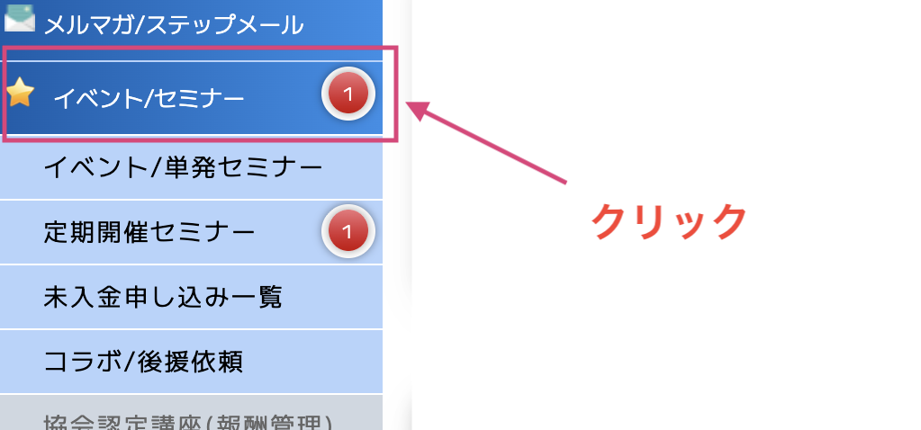 左側の「イベント/セミナー」をクリックします。