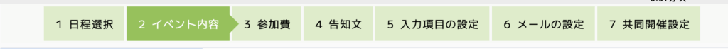 日にちを選んだら、イベント内容の設定をしていきます。すると、ページが切り替わり進捗状況がわかるような仕様になっています。