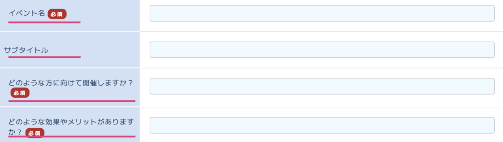 この4つの項目は、イベントを開催するにあたって非常に重要な部分になりますので、イベントを開催時はこの4つの項目を入力して開催するようにしましょう。