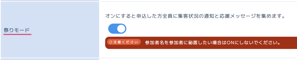 次に、「祭りモード」というものも設定できます。