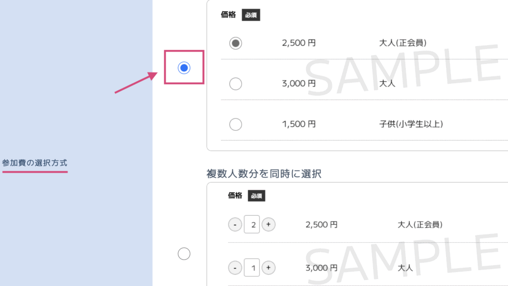 次にイベントに参加人数を設定します。こちらは申し込みができる人数を記載する欄になります。