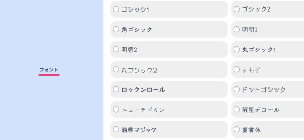 リザストのTOPページ、プロフィールなどで表示される文字のフォントを細かく設定することができます。