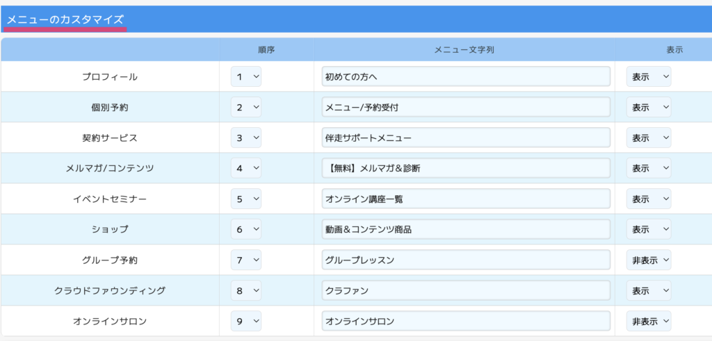 リザストでは、ホームページのようにメニューを表示することできます。そして、メニューの項目を変更することできます。