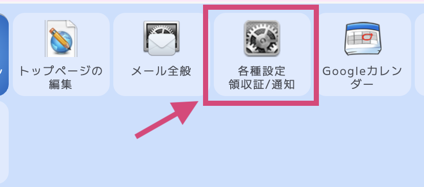 こちらは、「各種設定/領収書の通知」のアイコンをクリックしてください。